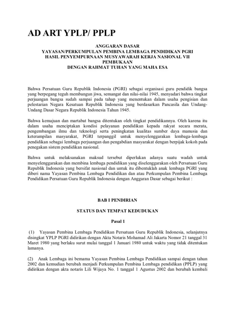 Anggaran Dasar Dan Anggaran Rumah Tangga Yayasan Pendidikan / Dokumen Pembina Yayasan Pendidikan Pembina Yayasan Pendidikan Ppi Taiwan Nomor Surat Keputusan Menteri Pdf Document - (selanjutnya dalam anggaran dasar ini cukup disingkat dengan “yayasan”).