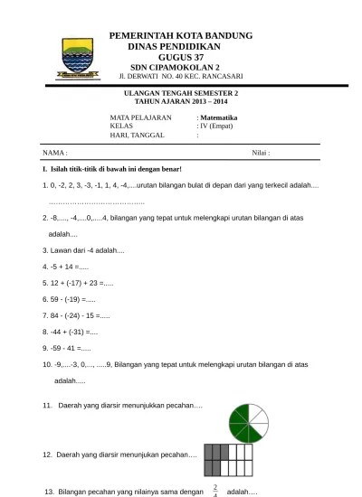 Lam bang bilangan dari sem bilan belas ribu sem bilan rat us sem bilan puluh sem bilan adalah… a. Dinas pendidikan sd negeri cipamokolan 3. Hai adik adik bagaimana nih kabarnya? Semoga sehat selalu ya, nah pada kesempatan kali ini kakak ingin membagikan beberap contoh soal yang mungkin adik adik . Soal uts matematika kelas 4 semester 1 .